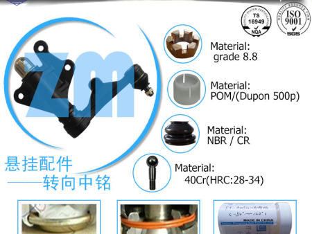 泰州市中铭汽车零部件有限公司向市场提供TIE ROD END, BALL JOINT,RACK END,SIDE ROD ASSY, DRAG LINK,IDLER ARM,PITMAN ARM,CROSS ROD,CENTER LINK,ARM SHAFT KIT,CONTROL ARM,LOWER ARM,STABILIZER LINK等系列4000余种规格型号的产品。
